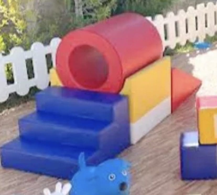 Yellow/white Cradle,red Slide,red Tunnel,blue Steps