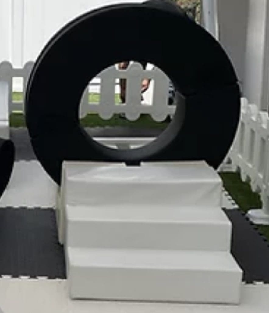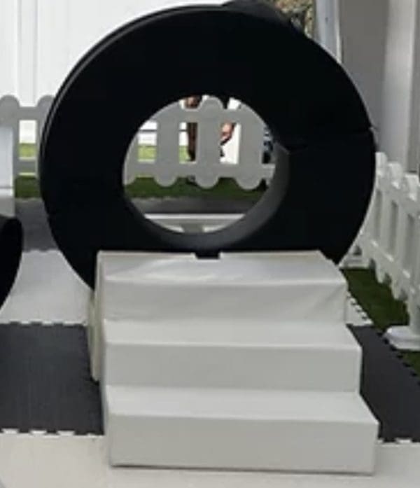 1 x White Slide,2 x White Cradle Pieces,1 x White Steps,2 x Black O Halves