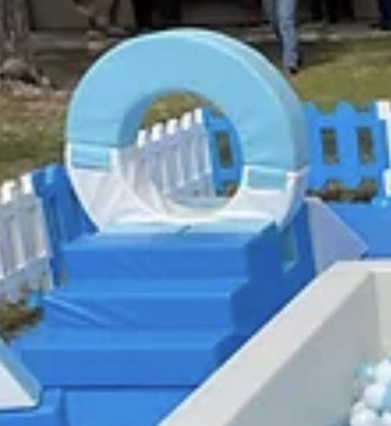 1 x White Slide,2 x Blue Cradle Pieces,1 x Meduim Blue Steps,1 x White Half O,1 x Light Blue Half