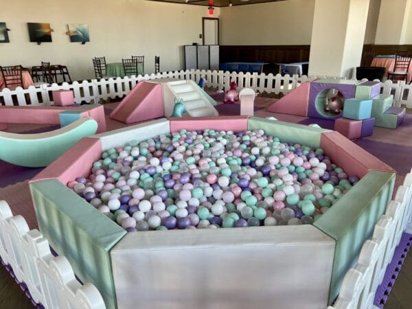 - Octagon ball pit in mint/white/pink