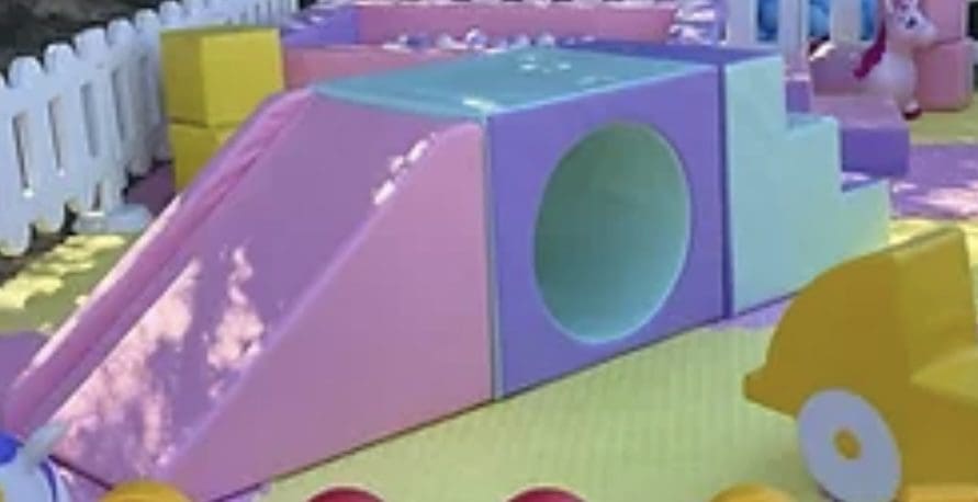 1 x pink Slide,1 x Purple and Mint Box With Hole,1 x Box Steps in Mint and Purple